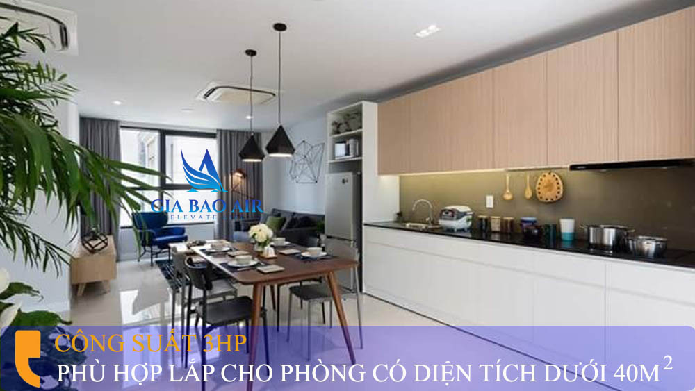 Công suất 3hp phù hợp lắp cho phòng có diện tích dưới 40m2