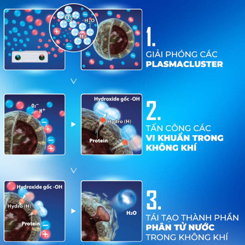 Các Plasmacluster ion có tính năng tương tự như các ion âm và ion dương có trong tự nhiên. Các ion được giải phóng tồn tại trong không khí vì chúng sẽ được bao phủ xung quanh bởi các phân tử nước đạt tiêu chuẩn tăng lực nâng lên đến 1100mm.