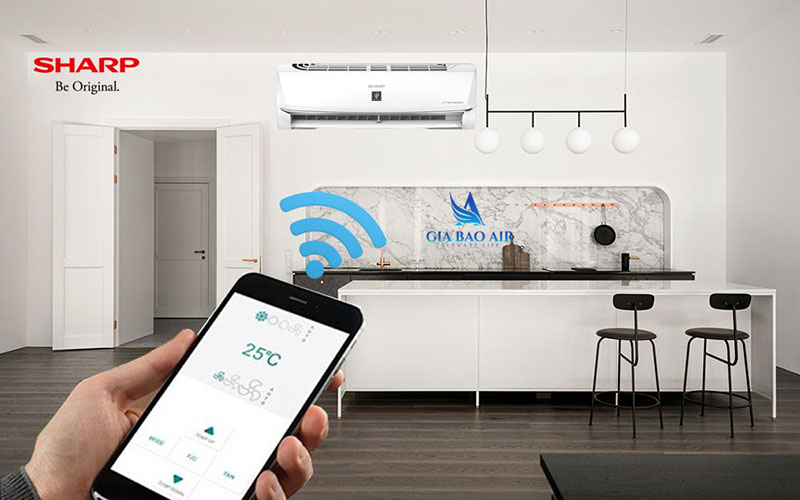 Máy lạnh Sharp Inverter Wifi AH-XP12WHW 1.5 Hp được hãng tích hợp công nghệ kết nối điện thoại thông minh qua cổng phát wifi, khi người dùng cài đặt ứng dụng sẽ điều khiển máy lạnh hoặc kiểm tra các thông số nhiệt độ phòng.