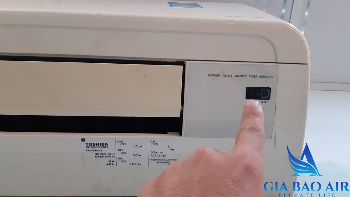 Dùng ngón tay ấn vào nút có chữ Reset trên dàn lạnh đèn Filter sẽ tắt.
