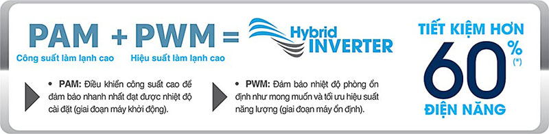 Điều hòa Toshiba còn tiến xa hơn với công nghệ biến tần Hybrid Inverter giúp tiết kiệm điện năng hơn.