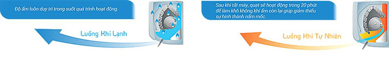 Sau khi tắt máy, quạt sẽ hoạt động trong 20 phút nhằm giúp làm khô không khí ẩm còn lại bên trong các ống đồng nhằm giảm thiểu sự hình thành vi khuẩn, nấm mốc và tránh gây mùi.