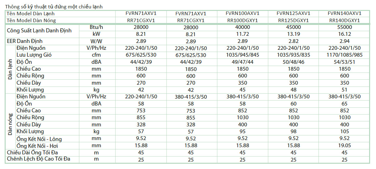 Máy lạnh tủ đứng Daikin FVRN71BXV1V được thiết kế dành riêng cho mô hình cửa hàng, nhà hàng và văn phòng nhỏ, dòng sản phẩm SkyAir đáp ứng mọi nhu cầu của khách hàng nhờ vào sự đa dạng trong công suất lạnh và nguồn điện cấp vào (Có thể chọn 1 Pha hoặc 3 Pha)
