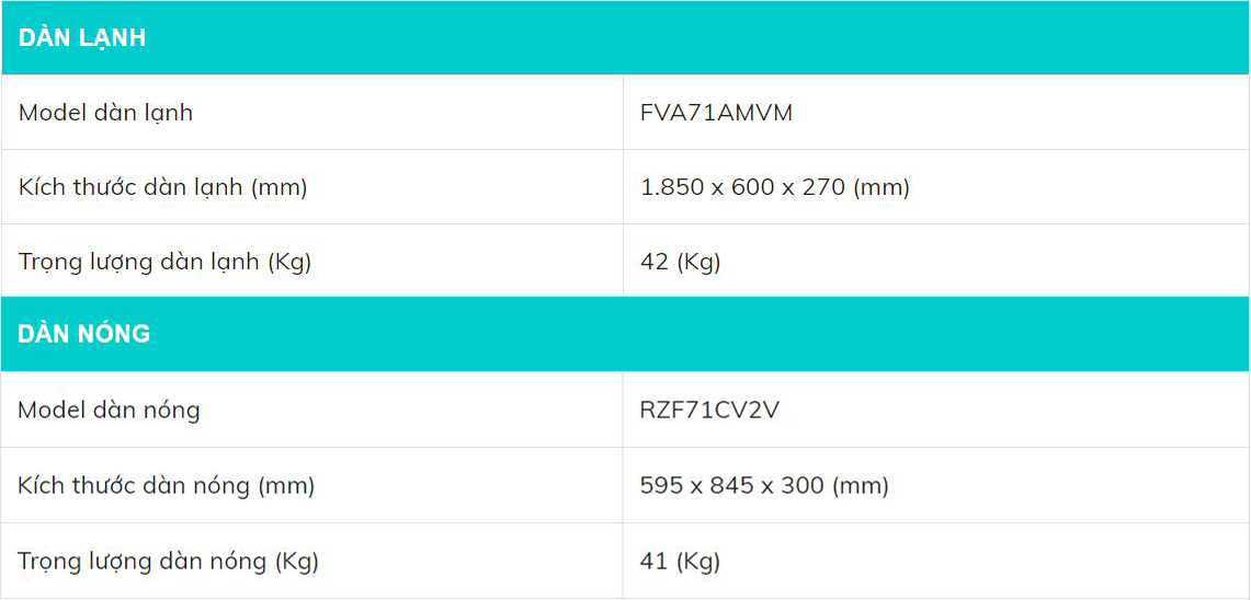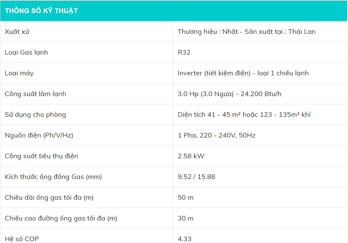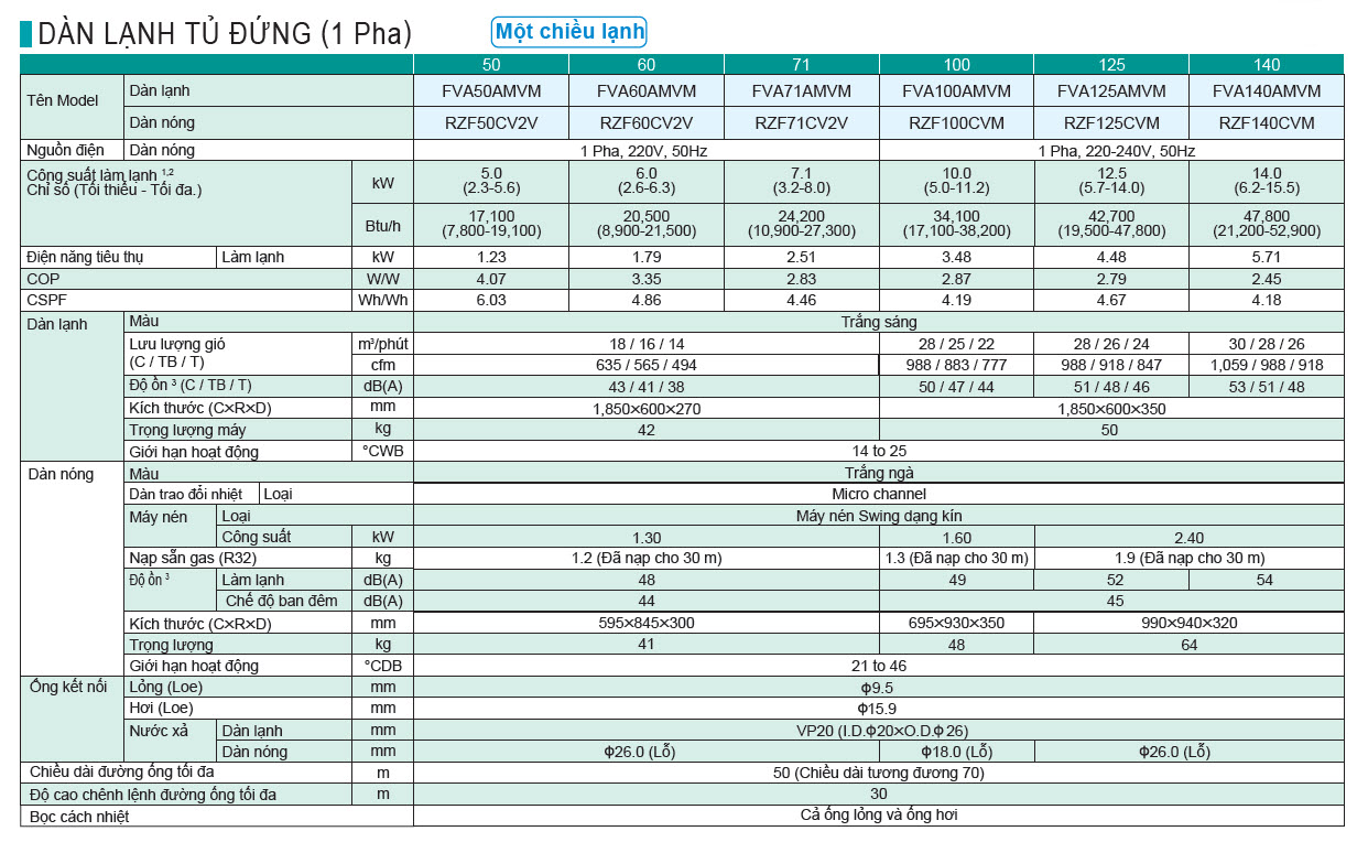 Thông số Máy lạnh tủ đứng Daikin Inverter FVA71AMVM (3.0Hp)  Xuất sứ Thái Lan
